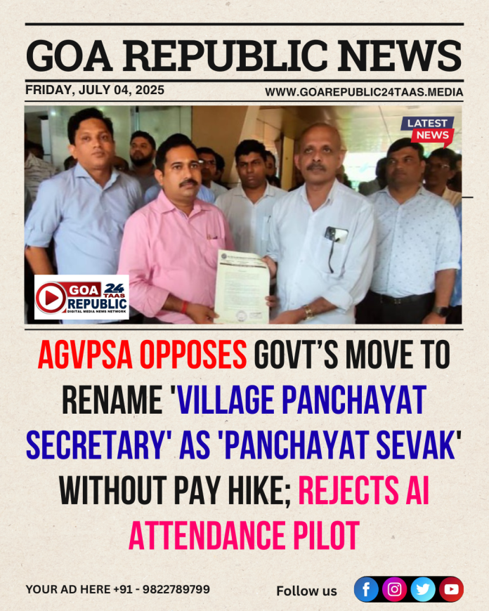 All Goa Village Panchayat Secretaries Association (AGVPSA) submits a strong memorandum to the Directorate of Panchayat opposing the state’s decision to rename their post from “Village Panchayat Secretary” to “Panchayat Sevak” without any pay scale revision.